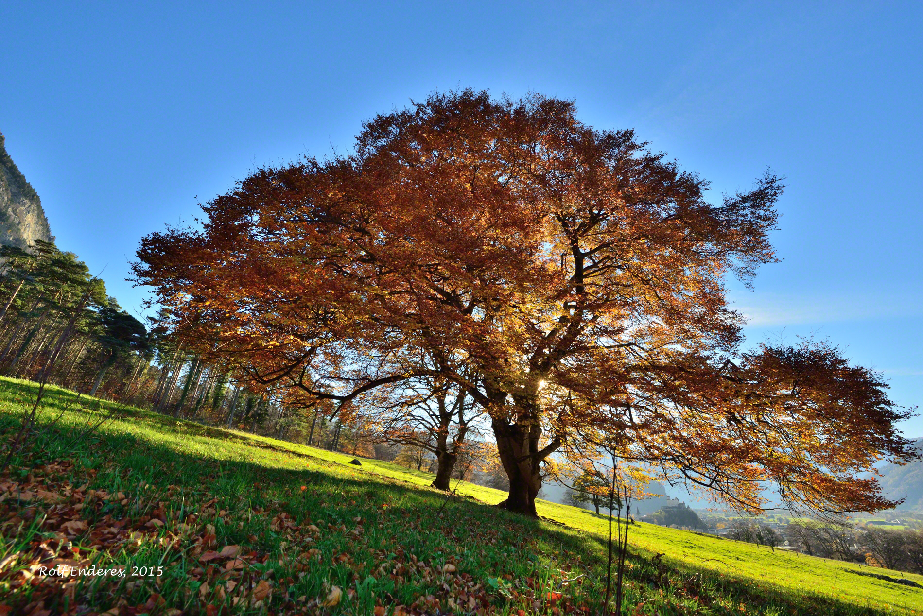 The last leaves in autumn on an old majestic tree in the mountains of the Alps. We should take care of it....